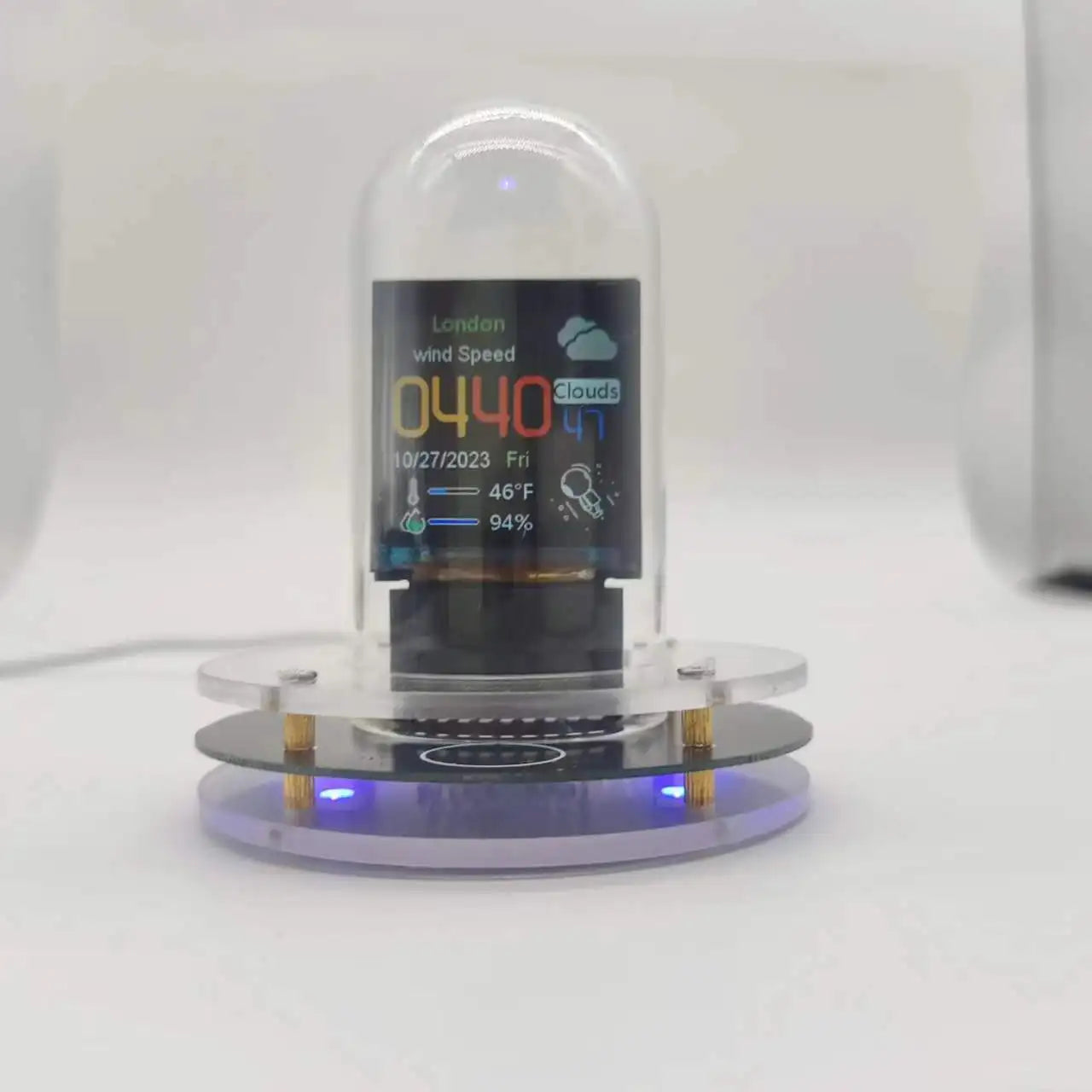 Smart Glow Tube Weather Clock with Bitcoin Price Tracker – Cyberpunk Style Digital Table Clock for IoT
