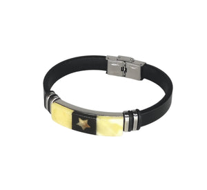 A natural baltic amber bracelet for men. Modern style with light and dark Amber + a Star symbol.