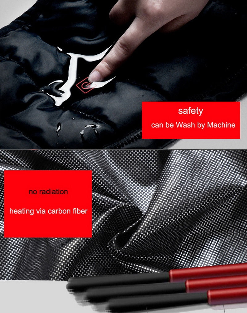 A 1000mah Powerbank can heat this body warmer for up to 8 hours (not included)